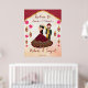Mehndi sangeet with a dancing Indian couple lotus Arabian Moroccan lanterns garlands, arch border personalized template welcome sign. Maroon and gold colors. Can change it for reception, wedding, etc