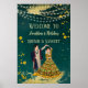 Mehndi and sangeet green background with dancing Indian bridal couple welcome sign poster editable template instant download. Can be used for wedding reception as well.