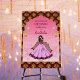 Mehndi welcome sign board maroon pink gold lotus oriental pattern dancing Indian bride with Moroccan lanterns arch frame welcome sign board.