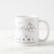 Mekhi spelled out in amino acids as M E K H I (Methionine Glutamic acid Lysine Histidine Isoleucine) on a mug for the scientist in you.