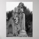 Black and white image of a weathered stone cemetery angel in a state of melancholy