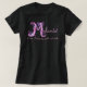 Pretty hand drawing of the letter M monogram name meaning t-shirt. Ideal for a personalized gift for a girl who has a name beginning with M. This example reads Melanie Dark. Intriguing, gentle and astute or you can customize the text with your own name and meaning if required. Ideal as a special birthday or celebration gift. If you need help with your own personalized name please contact me. Capital letter M typographical hearts and flowers drawing and graphic conversion in shades of dark navy, pink, white and purple © uniquely created by Sarah Trett. www.sarahtrett.com for www.mylittleeden.com