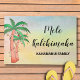 This festive doormat features watercolor palm trees decorated with colored lights on a colorful watercolor background. It says Mele Kalikimaka in stylish script typography and is easily customizable with your family name. Original Watercolor © Michele Davies.