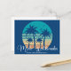 This cute Hawaiian Christmas postcard features a tropical beach sunset on a cool blue background with a drawing of coastal palm trees against a seaside sunset. Personalize with your name in white script under Mele Kalikimaka in cursive typography on these pretty non-photo family holiday postcards.