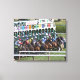 Turf racing on the Mellon Turf course. Feel the excitement and the thrilling sound of the hoofs beating down on the turf. The best grass racing in the country, here at Saratoga. At the start, where it all begins, the sound of the starting gate screams out and they're off! Fleetphoto