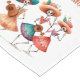 Adorn your table with a vibrant and personalized celebration of Día de Muertos using this customizable table runner featuring a delightful illustration of three dancing Catrinas! Above or below the cheerful artwork, you can add a family name, a welcoming message, a special date, or any text you desire to create a unique centerpiece for your gathering. Each skeletal figure is adorned with colorful floral hats and flowing dresses in cheerful hues of peach, teal, and red, bringing the joyful spirit of this Mexican tradition to your dining experience with your personal touch.