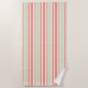 A beach towel with bright and bold melon-colored stripes creates a lively and cheerful design that instantly uplifts your beach ensemble.