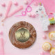 Melted, swirly, rich brown milk chocolate with a gold seal in the center for your monogram. Yummy. The whole plate can be personalized. For all chocolate lovers.