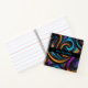 Metallic-looking swirls in turquoise, topaz, and amethyst on a black background makes this mini-notebook beautiful, modern, and eye-catching. Perfect for home, at the office, or at school.