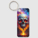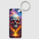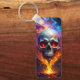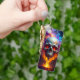 This artwork depicts a hauntingly surreal skull, its contours melting and distorted as if caught mid-transformation. The eye sockets blaze with an eerie, otherworldly glow, drawing viewers into their hypnotic intensity. Surrounding the skull, vibrant flames flicker and twist, merging seamlessly into swirling clouds of colorful smoke. The dynamic background adds depth and movement, contrasting with the luminous skull and enhancing the sense of both chaos and beauty within the piece.