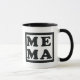 Mema Coffee Mug. This coffee mug is a perfect gift for any grandmother who is called Mema instead of Grandma. The black and white square design, which says Mema, is simple, minimalist, sleek, clean, modern, and contemporary.