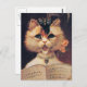 Cute vintage illustration of a cat wearing a fancy hat with feather. She's holding sheet music and singing