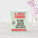 * INSIDE GREETING: "Thank you to a great coach!" COVER - A great coach is lucky to find, hard to part with, and always remembered.