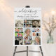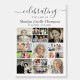 Celebrate the life of your departed loved one with this photo remembrance tribute foam board sign utilizing this easy-to-upload photo collage template with 17 square and rectangle pictures to display at a funeral memorial service, wake, visitation or Celebration of Life event. The design features modern fancy calligraphy script typography for the title CELEBRATING THE LIFE OF NAME and dates. OPTIONS: The sample is shown in a 20x28" size; other sizes are available (choose Custom Size for even borders by changing the height and width proportionately AFTER clicking the UNLOCK icon). You can also transfer the design to a poster, banner, tapestry backdrop or other products or have the designer convert it to an instant digital download file for printing locally. ASSISTANCE: For help with design modification or personalization, color change, resizing or transferring the design to another product or converting to a Download file, contact the designer BEFORE ORDERING via the Zazzle Chat MESSAGE tab below or email makeitaboutyoustore@gmail.com.