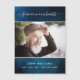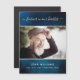 A simple and elegant memorial photo magnet. A dark blue sky as background, white frame. Personalize and add a photo and details. Text: forever in our hearts.
