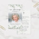 Keep the memory of a loved one close with this custom personalized prayer card featuring one beloved photo, the sentiment IN LOVING MEMORY, name and dates on the front and an editable prayer you can change to a meaningful custom message, poem, quote or bible verse accented with a simple cross on the back and soft watercolor greenery. It makes a meaningful keepsake to share at a funeral, memorial service or Celebration of Life and offers comfort and a lasting tribute for family and friends. Its small and portable size of 3.5x2" (wallet-sized) makes it convenient for loved ones to carry it with them as a reminder of your loved one’s life and spirit. Personalization makes each card unique.