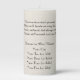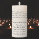 This custom Memorial Candle is decorated with a background of off white, rustic, faux textured burlap. Text, in black, says "Those we love don't go away, They walk beside us every day, Unseen, unheard, but always near, Still loved, still missed, and very dear." Easy to personalize, just change or delete 5 lines of example text (names). Memorial candle is available in 3 sizes, but this design is best on 6". All Rights Reserved © 2016 Alan & Marcia Socolik.