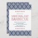 Our summery party invitations are perfect for your Memorial Day bash! Design features a classic American color palette of red, white and blue, with a diamond chevron patterned background, red star accents, and modern lettering in navy blue and rich dark red. All text fields are fully customizable, making it easy for you to add your party details and change the holiday, occasion or event type.