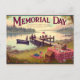 Here’s vintage watercolor-style travel postcard for Memorial Day (USA), featuring a serene lakeside picnic scene with a wooden dock, a small rowboat, and families relaxing on a grassy shore with flags and a picnic setup. 🇺🇸✨ The design has soft, faded colors and nostalgic vintage typography, creating a peaceful and charming look.