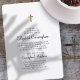 Composed of cursive script and serif typography; All against a backdrop of white background. A simple faux gold cross subtly decors the typography. This is a classic, simple and clean funeral or memorial invitation.