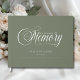Customer specific, memorial, elegant, simpel "In Loving memory" handwriting font, sage green funeral guest book.