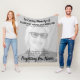 Personalized memorial tribute fleece blanket featuring a large precious picture of your lost loved one, the text "in loving memory", their name, birth/death dates, and the remembrance saying "your presence we miss, your memory we treasure, loving you always, forgetting you never".