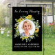 In Loving Memory custom memorial garden flag in a elegant sunflowers and eucalyptus greenery design. This unique photo memorial garden flag is the perfect gift for yourself, family or friends to honor those loved .