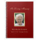This memorial or funeral guest book notebook is featured in burgundy with golden accents. Your photo is the focal point with the name of your loved one and dates right below the photo. Above the photo are the words "In Loving Memory." A lovely personalized memorial or funeral guest book notebook. Copyright sympathythankyou