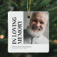 Minimalist memorial christmas ornament featuring a picture of the person who is being remembered, the sympathy saying "in loving memory", their name, and birth/death dates.