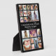 Personalized picture memorial plaque featuring a black background that can be changed to any color, 21 treasured photos, the saying "forever in our hearts", their name, and dates.