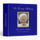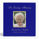 This navy memorial remembrance book binder is a lovely way to remember your loved one. Featuring a photo as the focal point in a golden frame, the design can be customized with your loved one's name and dates. In addition, the words "In Loving Memory" appear on the front cover and the words "Forever Loved" appear on the spine. This plastic binder is empty inside for you to customize as you desire or turn the binder into a memorial album. Copyright henishouseofpaper