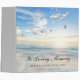 This memorial remembrance book personalized gray binder features a photo of a heavenly beach scene as the focal point with the words "In Loving Memory" on the photograph.