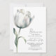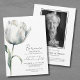 Celebrate the life of your loved one with this elegant and modern floral memorial service invitation. This design features a clean white background on both the front and back, adorned with a simple white tulip flower stem, adding a touch of grace and sophistication. The black fonts combine script and serif typography, providing a refined and tasteful appearance. Perfect for a memorial service, funeral, or remembrance gathering, this invitation includes space for your loved one's name, dates, and a section to share memories or an obituary on the back. You can personalize all the text with your information and even adjust the background color if desired. Additionally, the design allows for a photo on the back, which can be set to a black and white filter for an extra special touch, though this can be modified in the full editor settings. Memorial Script Celebration Of Life Funeral Invitation. Available as a printed invitation, or as a downloadable digital invite that you can send in e-mail or have printed locally!