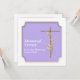 "Memorial service" invitations with customizable text templates. DESIGN: A gold cross adorned with a twig and golden leaves, is framed by a scalloped border set against a pastel purple background. CUSTOMIZE IT: Change the wording; the size / style and color of the font; move things around or delete templates not required and feel free to upload your own logo and/or art work designs. The color of the background may be changed to any colour of your personal choice by deleting the template and using the "customize it" button to access all editing options. IDEAL FOR: "In commemoration of" services, any religious or christian event, a funeral, baptism, christening or confirmation. CUSTOM REQUESTS - For assistance, color changes or custom designs, contact me on clientrequestrw@gmail.com