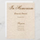 Memorial Service Program on parchment style background with script In Memoriam headline. Customize all text for a memorial celebration of life or program. A memorial celebration event is a wonderful way to share memories and pay tribute to a family member or friend, either in addition to, or instead of, a traditional funeral service. Use this flyer to design a custom program for any memorial service. Please contact me at the "created by" link below if you would like assistance with customizing.