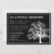 Elegant In loving memory - funeral announcement card. Featuring a stylish black background that can be changed to any color, an almighty tree, a white border and a funeral/memorial service template that can easily be personalized.
