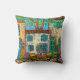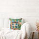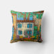 A colorful drawing scene of a charming little table for 2 in Picturesque Provence, France by Lisa Lorenz on a throw pillow.
