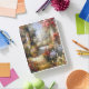 I was super excited when I got my cover in. It is attached by a magnet across the edge. I don’t think it will be very protective but it is very cute. I’m going to keep my iPad in a sleeve and use this face cover while I have it out. It folds to create a tilt for better viewing and to keep the iPad at a slight angle for typing. The colors are bright and it is fun. I’ve really enjoyed it. The personalization looks like amazing. It is the same color as the picture and is the same brightness. Well done! Very nice.
