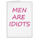 'Men are Idiots' written in pink lettering, against a crisp white background..