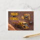 This cool postcard features a stunning photo of a yellow digger tractor and a dump truck on a construction site with the customizable message, "Men at Work."