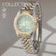 The tranquil aqua marble dial evokes serenity, while the gold detailing adds luxury and distinction. Its two-tone strap — gold and silver — suits both traditional and modern tastes, making it a stunning choice for men of all ages.