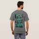 My 11 yo wore adult XL (5’7” 165#). The 8yo is small framed. She wore adult small and tied it in the back. Grandma wore adult large with long sleeve shirt underneath. Tall girl adult medium. Dark haired male adult large. Good quality dark Heather gray, Gildan brand shirt. -it was next up from basic choice and cost about $20 per shirt. Not too thick or thin. Washed and dried well, no major shrinkage. Not see-through. Can wear a bra under it fine. Screen print is just as shown and well done, front and back.