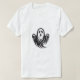 white T-shirt with a bold black graphic printed on the front. The design features a stylized ghost illustration with flowing, wavy edges and raised arms, giving it a playful yet slightly spooky look.