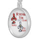 I chose gold plated so that the metal would not react with my skin oils and perspiration. But, I changed the necklace from the gold plated one to a sterling silver. My skin cells will tarnish the silver. But it will not look as bad if some portion of the gold plated necklace somehow became compromised. Zazzle did a find job turning the picture into a pendant for me. As you can see, the colors and the printing of the final product, match the preview. The picture I took is not very clear. But I am pleased with the product I received.