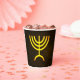 A brown and gold digital rendering of the Jewish seven-branched menorah (Hebrew: מְנוֹרָה). Add your own text on the reverse side.