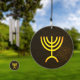 A brown and gold digital rendering of the Jewish seven-branched menorah (Hebrew: מְנוֹרָה).