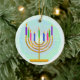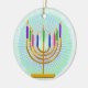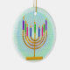 A beautiful nine candle menorah with lit candles, perfect for Hanukkah!