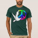 Dove, rainbow peace sign and the word Peace against a purple-blue background