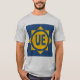 The shirt is good quality and fits just fine, but the colors of the printing are not as bright as in the sample photo. Not the best. The colors are a lot brighter in the sample photo; when I received the shirt they appeared faded. The red looks a little more pink and the blue is a lot lighter. N.B. I did not wash the shirt yet.