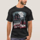 My 11 yo wore adult XL (5’7” 165#). The 8yo is small framed. She wore adult small and tied it in the back. Grandma wore adult large with long sleeve shirt underneath. Tall girl adult medium. Dark haired male adult large. Good quality dark Heather gray, Gildan brand shirt. -it was next up from basic choice and cost about $20 per shirt. Not too thick or thin. Washed and dried well, no major shrinkage. Not see-through. Can wear a bra under it fine. Screen print is just as shown and well done, front and back.